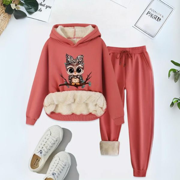 Souprava s potiskem sovy: teplá tepláková souprava s dlouhým rukávem a kalhoty na podzim a zimu.