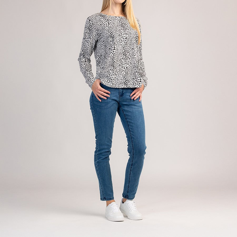 Bavlněné tričko s dlouhým rukávem, které kombinuje pohodlí a moderní vzhled pro každodenní nošení. Měkká a prodyšná tkanina příjemně obepíná pokožku a klasický střih zajišťuje perfektní a neomezený střih.